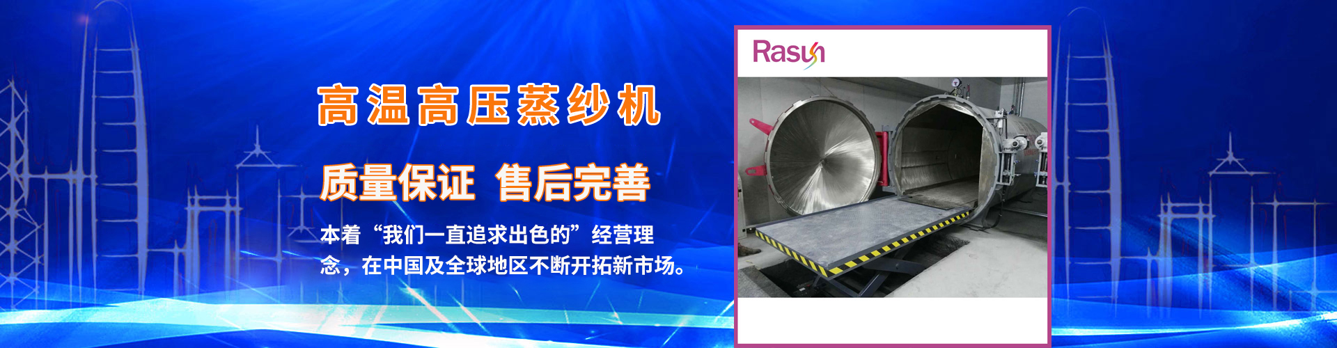 江蘇日新紡織科技有限公司是一家集科研、開發、生產、銷售、服務為一體專業設計制造蒸紗機,蒸紗鍋,蒸箱,定型機,襪子定型機,紗線定型機的的廠家,蒸紗機生產設備精良,蒸紗鍋設計工藝 ,蒸箱檢測手段齊全,紗線定型機技術雄厚,高品質的蒸箱,蒸紗鍋,蒸紗機,紗線定型機產品,在國內外享有盛譽。公司坐落于江蘇省金湖縣建設西路413號,處于南京、揚州、淮安一小時都市經濟圈。公司本著“誠信之本”的經營理念,在中國及全球地區不斷開拓新市場,熱誠與社會各界有識之士合作,構成一個良好的營銷體系。為您提供專業的一條龍服務。愿江蘇日新人能感染您,推動您,走入永遠屬于我們的天空中去。 + MORE